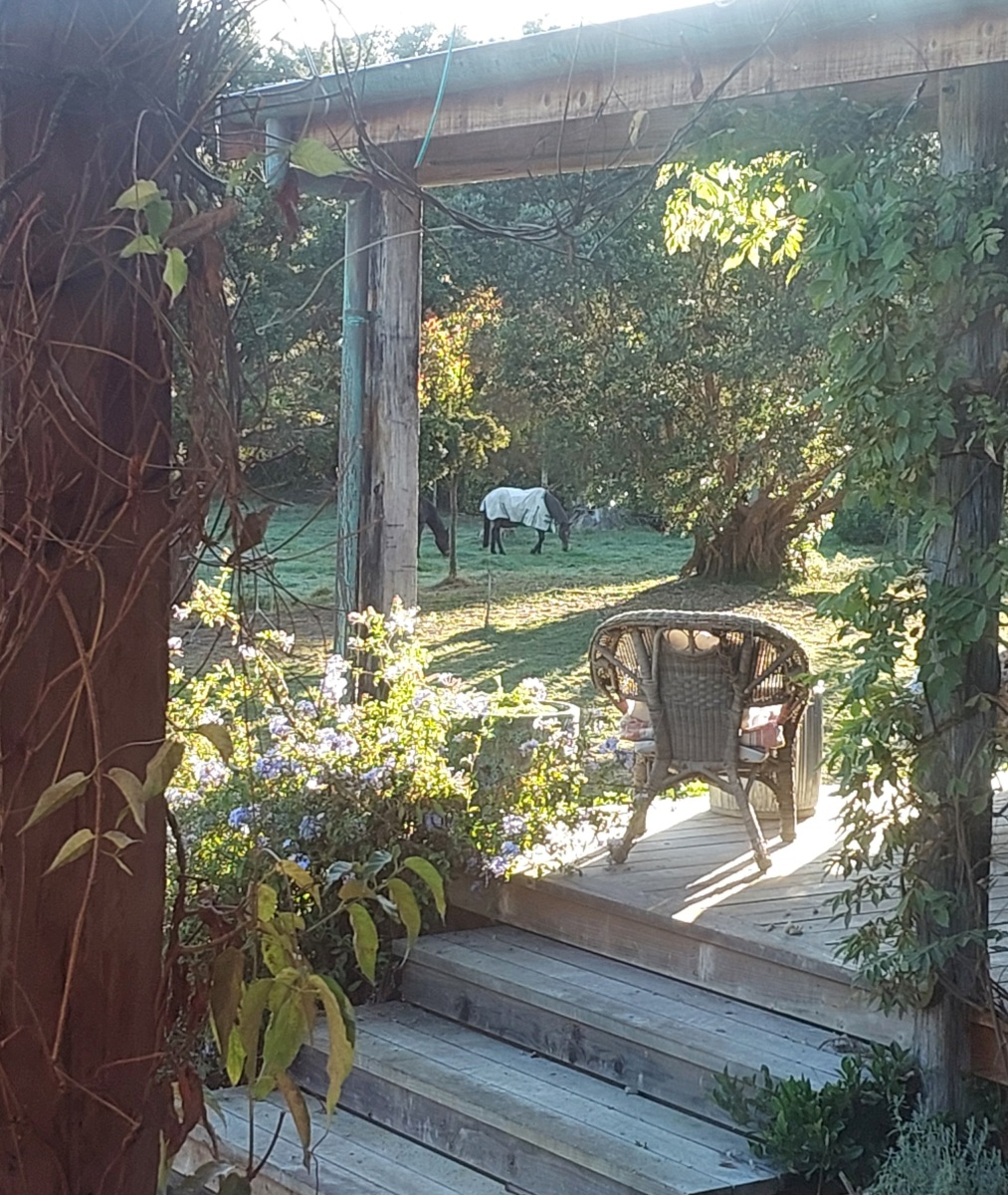 My love of horses also inspired me to bring my horses into my space as much as possible – the water trough at the garden edge, minimal garden around the house which they can lean over for apples (but don’t want to eat!), and a carrot-feeding window opening straight into their paddock are some of the elements I have used. Visitors often say the house feels like a safari lodge as the horses stroll past the dining room window! All part of the plan.